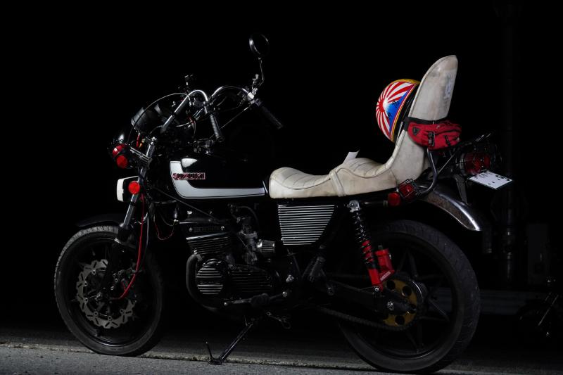 2スト3気筒特有の、甲高くて(色んな意味で)他を寄せ付けないエキゾースト、その音圧、そして無骨なシルエットと、男心をくすぐるポイントをいくつも押さえたバイク、GT380。そのイメージはズバリ"漢の単車" 。