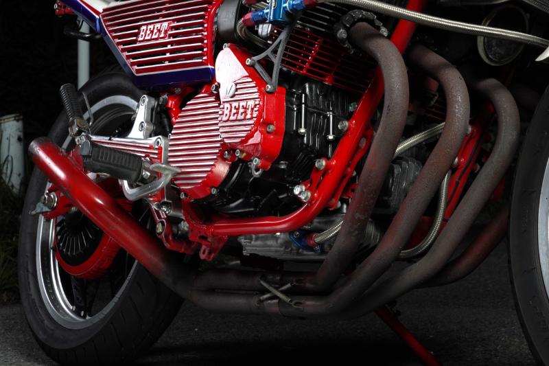 テール周りはBEETの角型テールカウルとクリアテールランプを組み合わせた、CBXらしいパーツ構成。無駄をそぎ落とした造形が独特の存在感を放つ、旧車會では定番ともいえるスタイルだ。