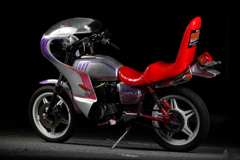 ちなみにオーナー氏によると「国産モノのバブで載せ替えはなし」の個体とのこと。改めてこうして眺めてみると、族車としての存在感を放ちながらもベース車両の魅力をきっちり引き出している。
