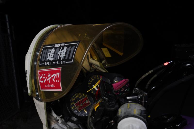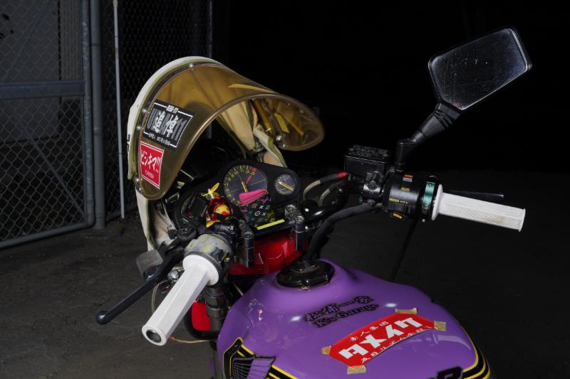 風防に限らず「族車は目立ってナンボ」と考える方は少なくない。敢えて多色使いでバイクを彩る方も、それぞれに主義主張があるのだ。