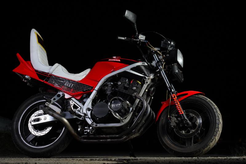 こちらのバイクは、旧車好きならCBR400Fだね、と分かる。
