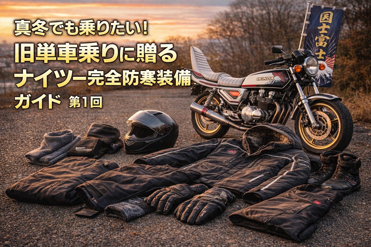 当たり前だがバイクは全身を晒して運転する乗り物。当然、外気の影響をモロに受けるわけで、真冬の深夜など寒くて乗れたもんじゃない。……本来なら。ところが旧車乗りはバイクが大好きで、真夏だろうが真冬だろうが乗りたくなったら乗ってしまうという特殊な性癖(⁉)を持っている人種。走るのを控えてもいいはずだが、止めても止まらないのが旧車乗りというものだ。ならば「震えながら根性ツー」じゃなく、賢く暖を取ってナイトランを楽しみたいところ。ここでは、旧車會系ライダー目線で、5パート構成の「暖かアイテム」ガイドを3回に分けて紹介します。