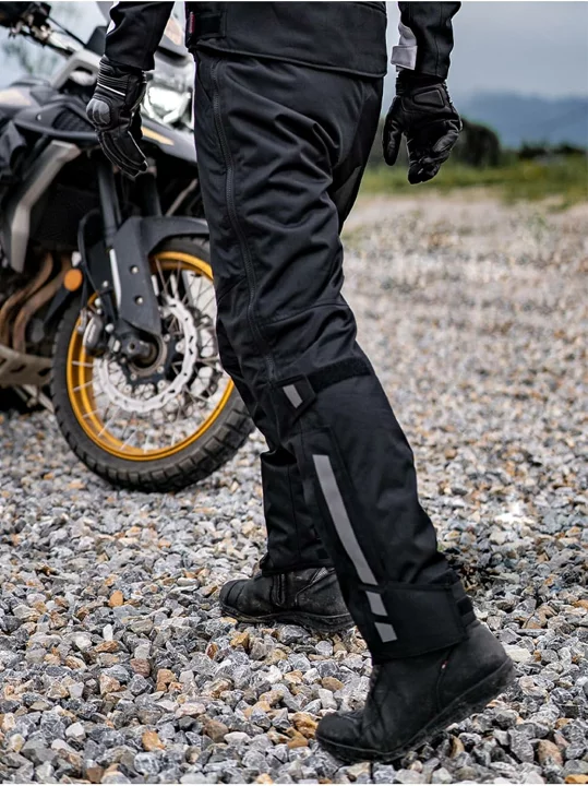 上半身だけガチガチに防寒しても、冷えが一番キツいのは実は足。特に腰からモモの前側にかけて冷えると、一気に体全体が寒く感じます。PK-918は防風・防水・中綿入りで、膝プロテクターも標準装備のウインターパンツ。裾ファスナーでブーツの脱ぎ履きもしやすく、真冬の高速でも「下半身が一番ラク」と感じるくらいの安心感があります。